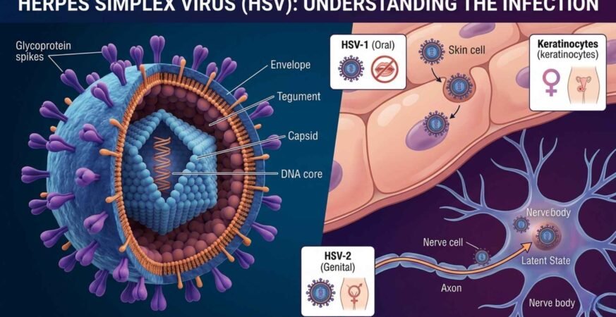 Herpes simplex virus (HSV) is a common, contagious virus from the herpesviridae family that causes lifelong infections, primarily oral or genital sores. Definition HSV is a double-stranded DNA virus that infects humans, establishing latency in nerve cells after initial infection and reactivating periodically. Causes It spreads via direct skin-to-skin contact, including kissing, oral sex, or […]